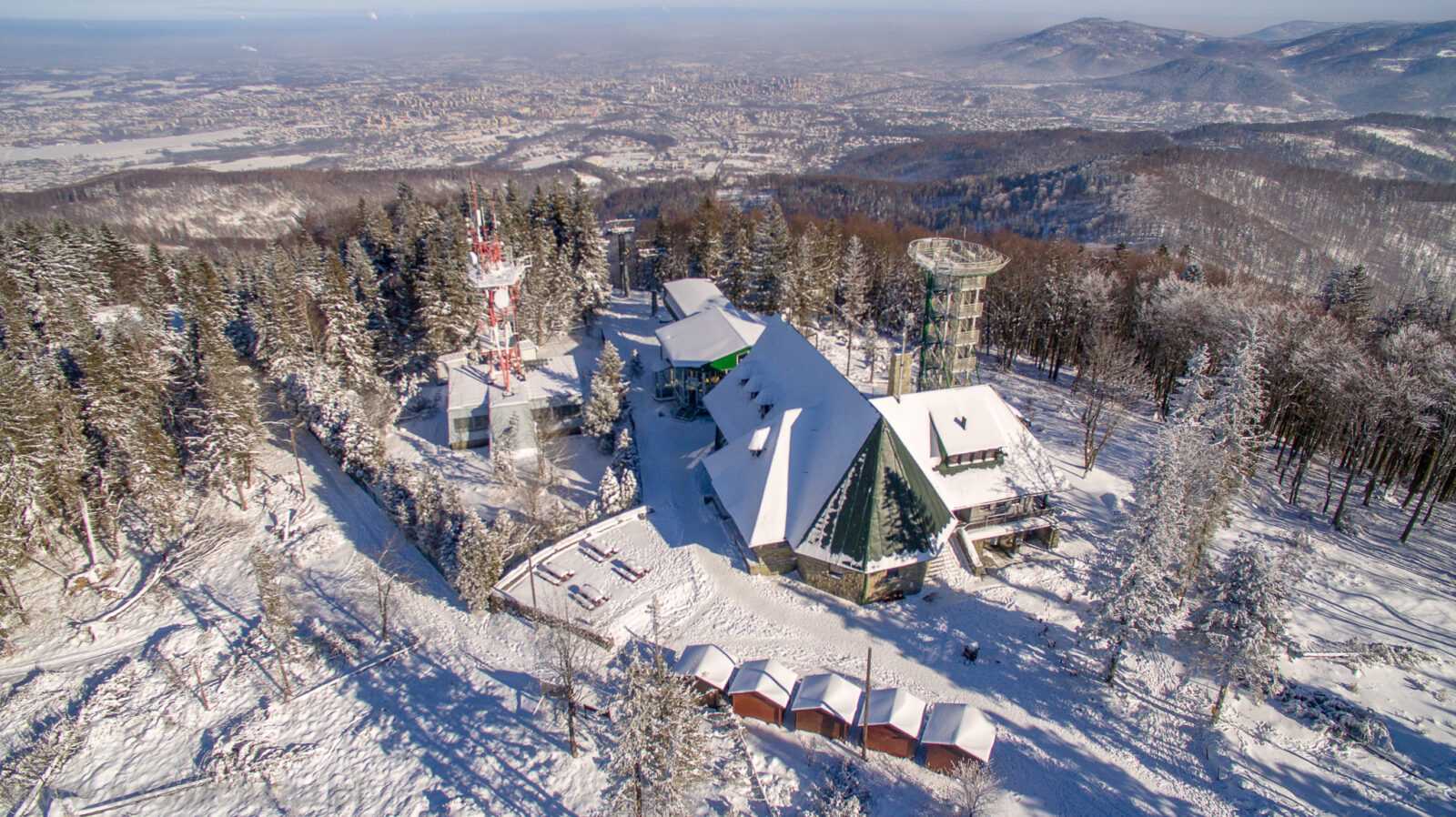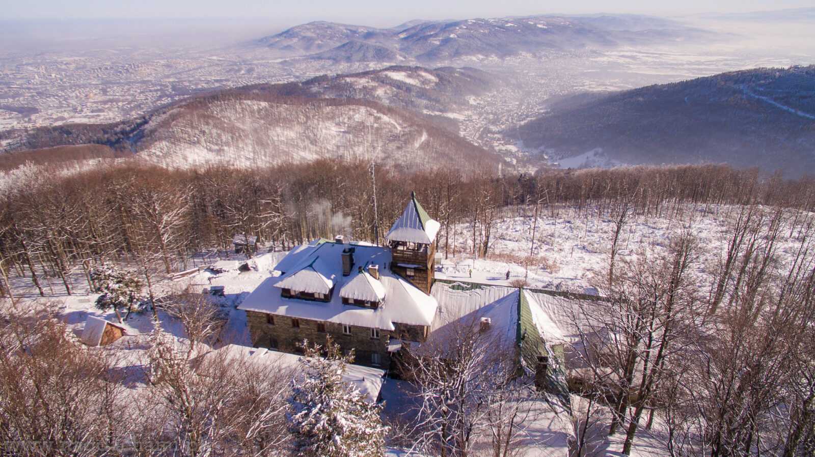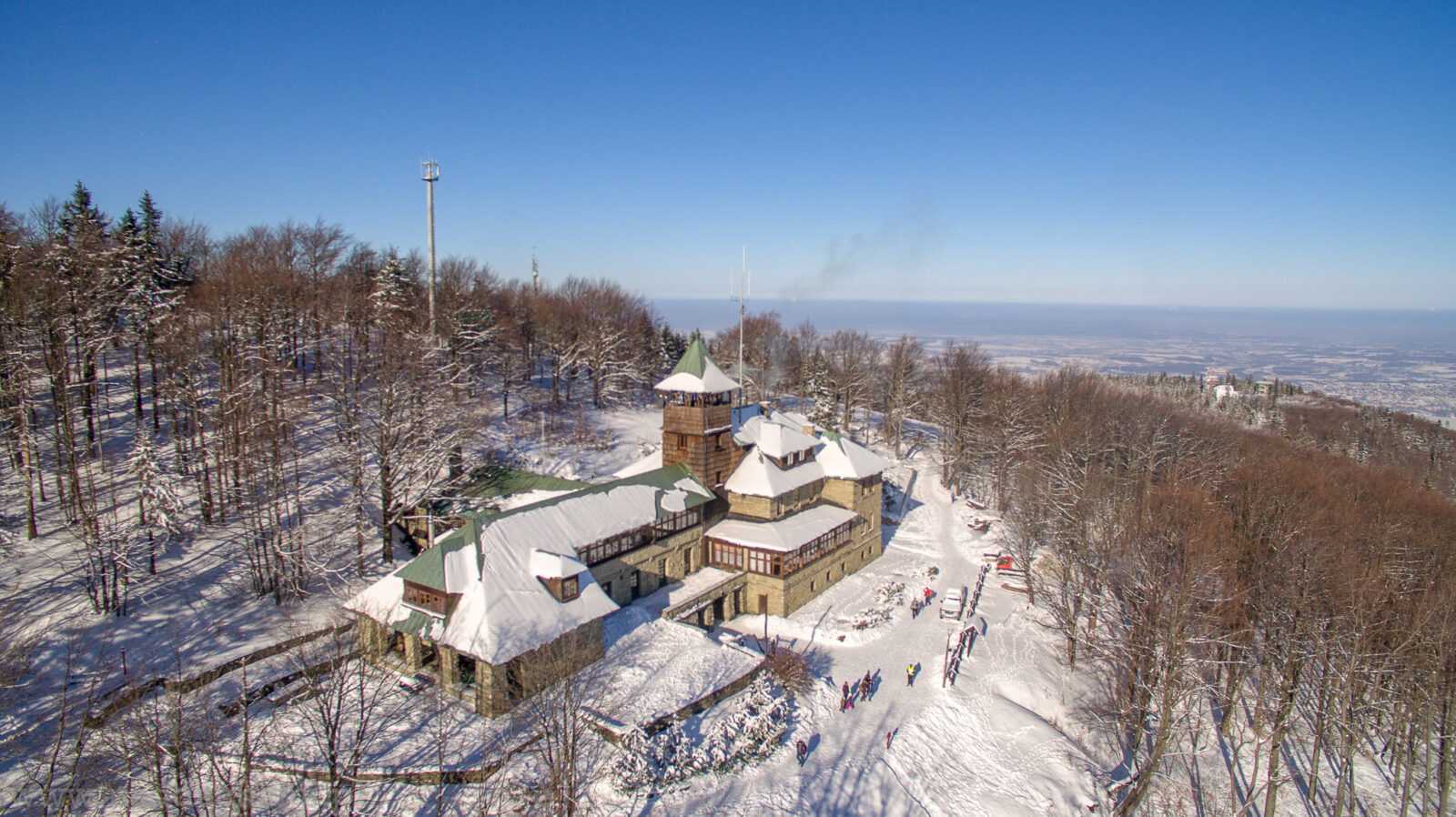 Schronisko PTTK na Szyndzielni czyli pierwsze murowane schronisko w Beskidzie Śląskim, oddane do użytku w 1897 roku. Na ostatnim zdjęciu górna stacja kolejki linowej.