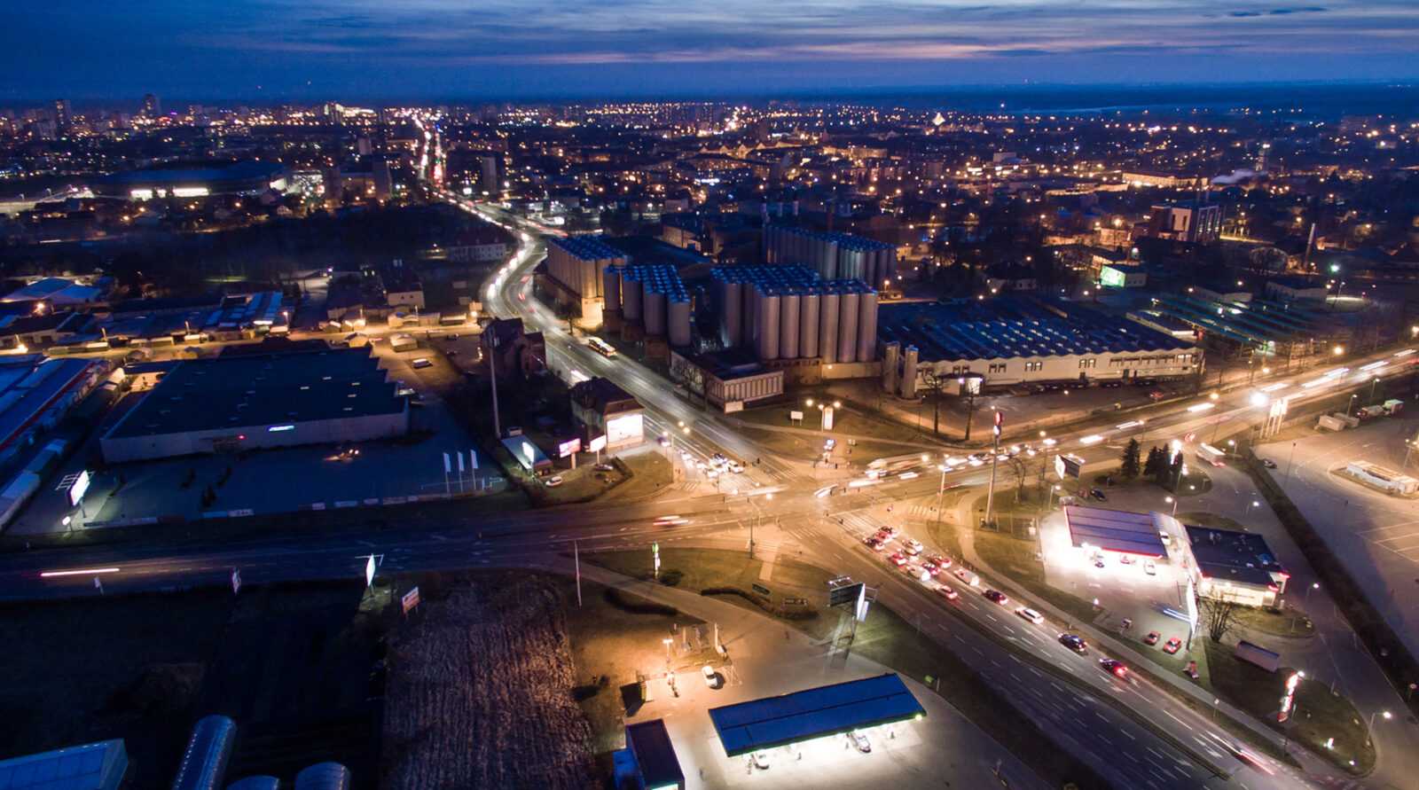 Ponad 1500 zdjęć z powietrza wykonanych tuż po zachodzie słońca w Tychach sklejone w jeden film poklatkowy. Dron Timelapse czyli widok m.in. na 'ślimak' - Beskidzka / Oświęcimska - E75 i 44, Browar - ul. Katowicka / ul. Mikołowska, Rondo MCD - Aleja Bielska / Jaśkowicka itd.