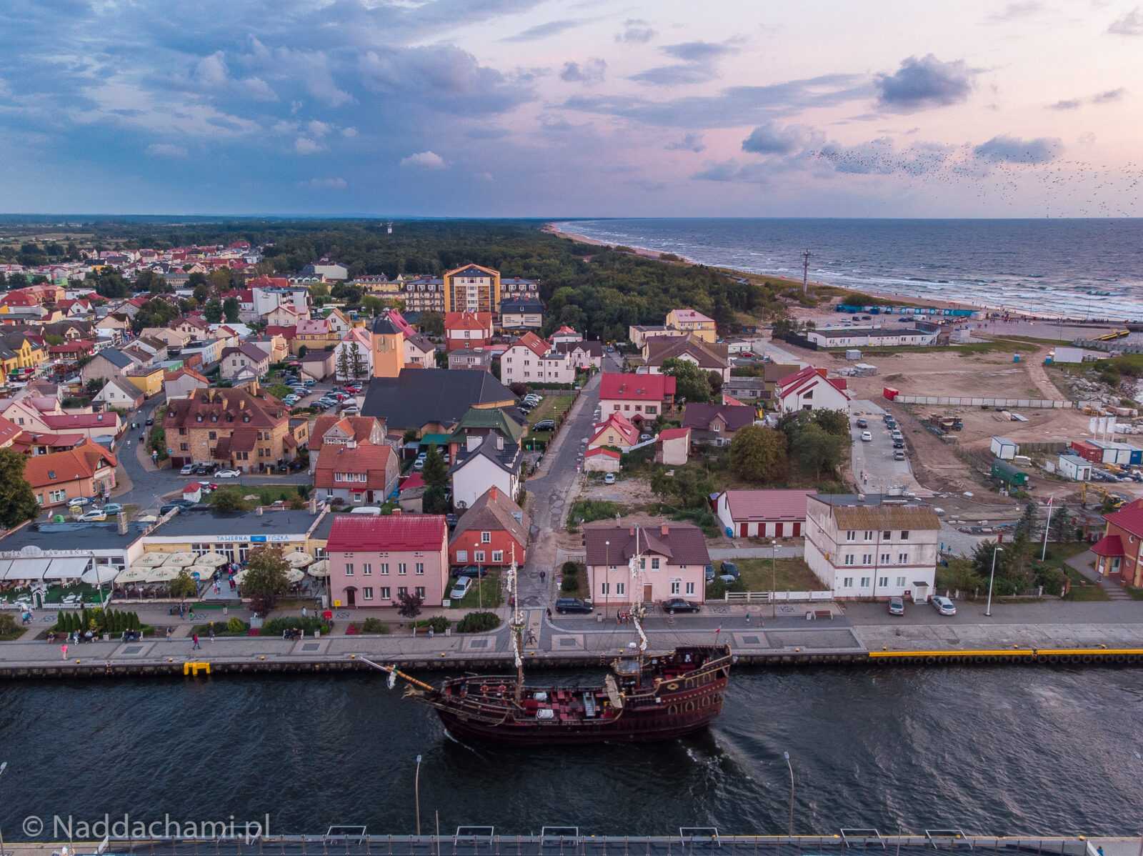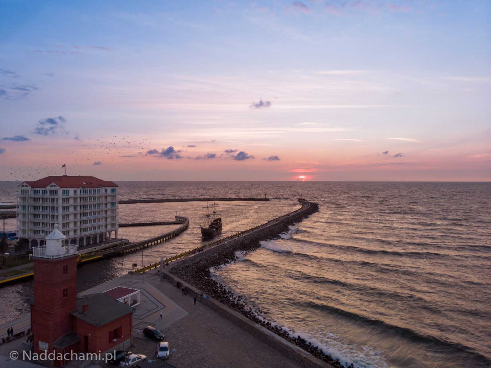 Zachód słońca zrobiony w nadmorskiej miejscowości Darłowo. Ciekawostką jest również zdjęcie na którym widać statek wpływający do portu (Port Morski Darłowo) z mostem zwodzonym.